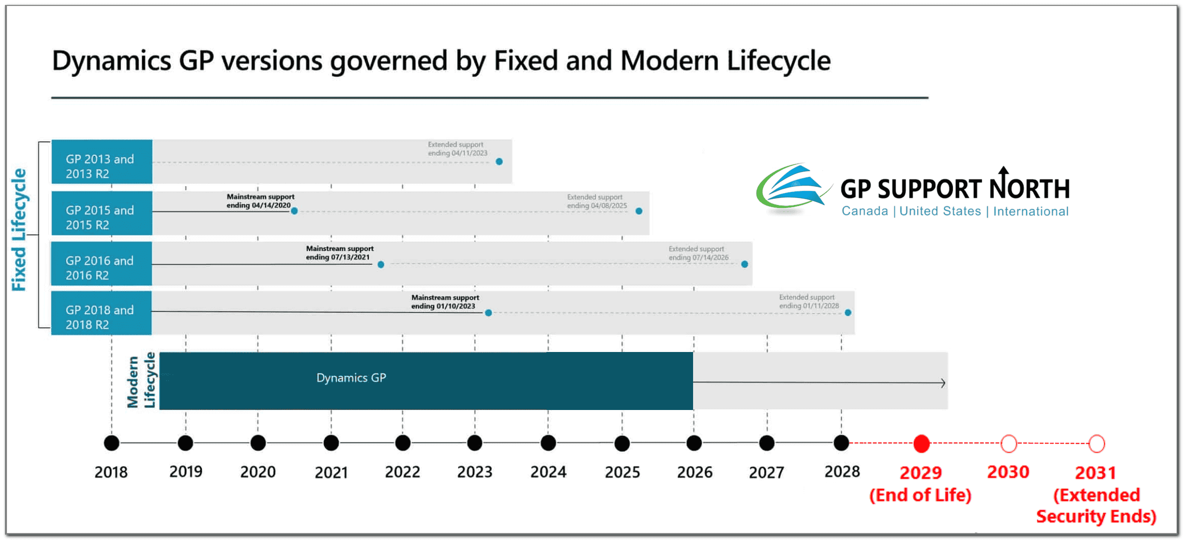 While we're excited about these advancements, Microsoft has also announced that support services, software updates, and enhancements for Dynamics GP will officially end on December 31 2029. (GP End of Life) However, security updates will continue to be available until April 2031, providing added peace of mind.